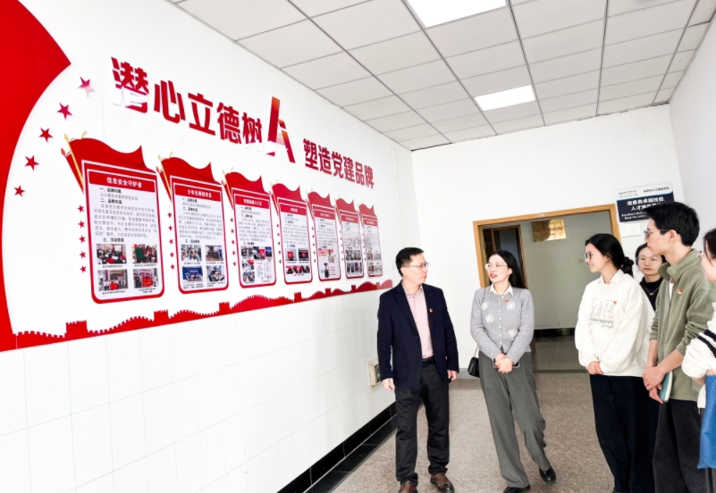 園區(qū)黨員代表在周主任和王院長的陪同下參觀了學校校史館,深入了解了商貿(mào)學院的創(chuàng)立背景、發(fā)展歷程、教育教學成果以及社會影響力等方面的內(nèi)容,校史館充分展現(xiàn)了學校的辦學理念、悠久的歷史積淀和豐富的文化底蘊。隨后參觀了信息與人工智能學院教學樓和教學設施,了解了學院的榮譽歷程、師資團隊以及黨支部多種多樣的黨建活動。