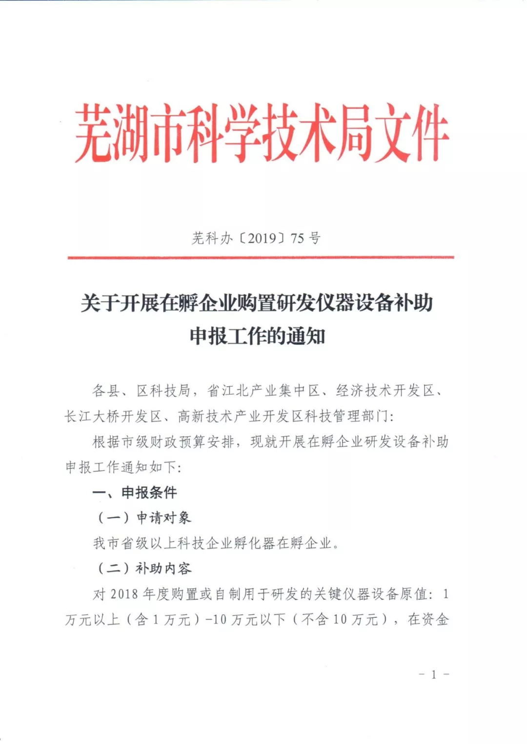 關(guān)于開展在孵企業(yè)購置研發(fā)儀器設(shè)備補(bǔ)助申報(bào)工作的通知
