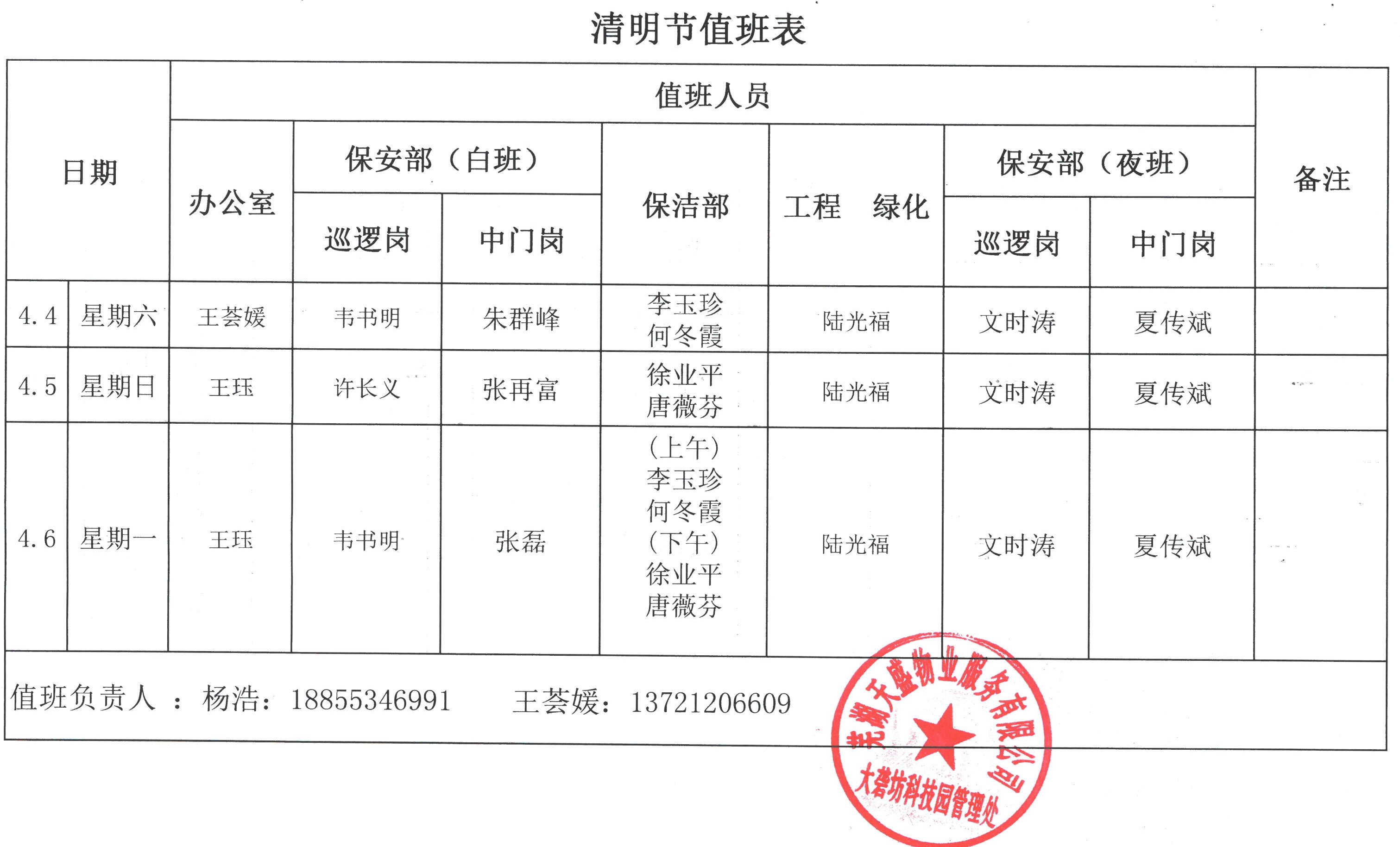 附:1.安徽礱坊科技發(fā)展有限公司值班表