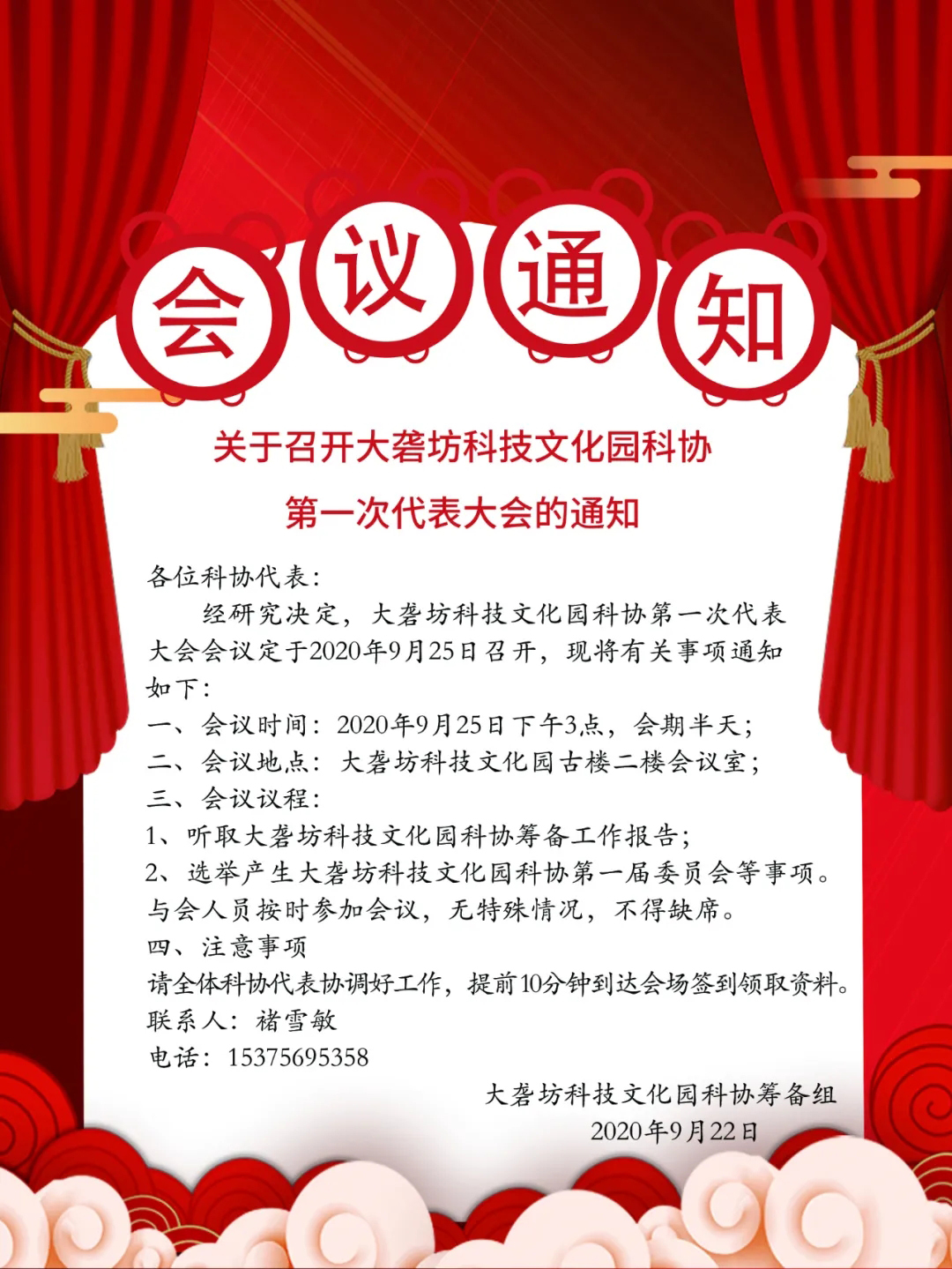 關(guān)于召開(kāi)大礱坊科技文化園科協(xié)第一次代表大會(huì)的通知