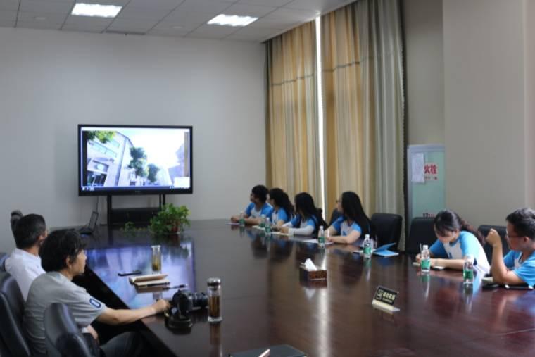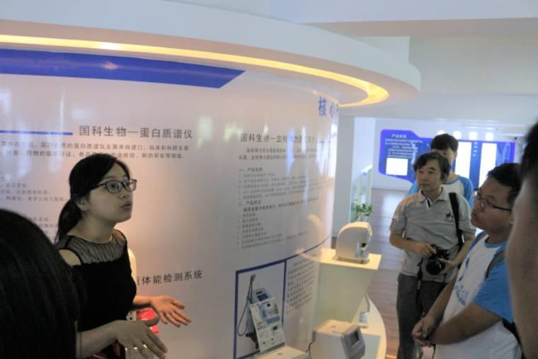 圖為安徽國科生物科技有限公司負(fù)責(zé)人向團(tuán)隊(duì)成員及指導(dǎo)老師介紹公司先進(jìn)的科技產(chǎn)品和已經(jīng)取得的成績。通訊員彭文婷攝