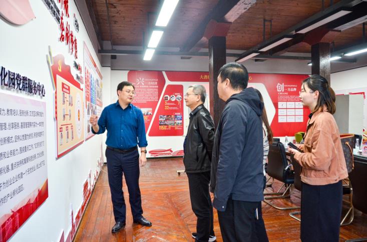 11月18日,鏡湖區(qū)委常委、組織部部長(zhǎng)張正飛、區(qū)科技局副局長(zhǎng)來園指導(dǎo)非公黨建工作,園區(qū)黨委書記卞國琛陪同參觀園區(qū)黨群服務(wù)中心,并作工作匯報(bào)。